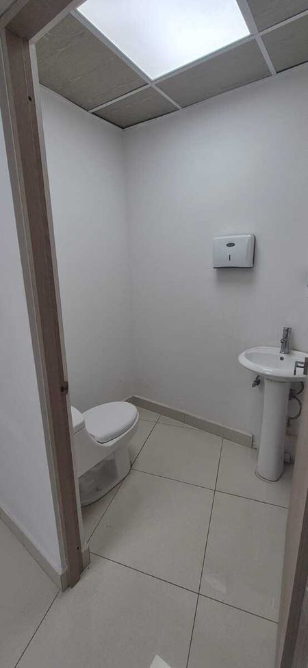 En la entrada principal hay un espacio para recepción y cada consultorio tiene su entrada independiente y el baño está integrado.