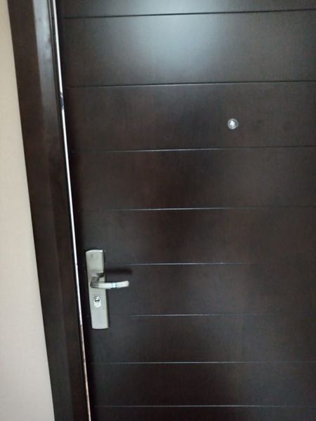Puerta de seguridad y cámaras en el edificio.