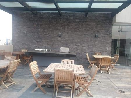Edificio de primer nivel, con acabados de máxima calidad. Con acceso a estupendas áreas comunes como salas de juntas, gimnasio con regadera, acogedor roof garden con asador y mobiliario tipo lunch, dos lugares de estacionamiento. Recepción común y vigilancia 24 hrs. Mantenimiento incluido.