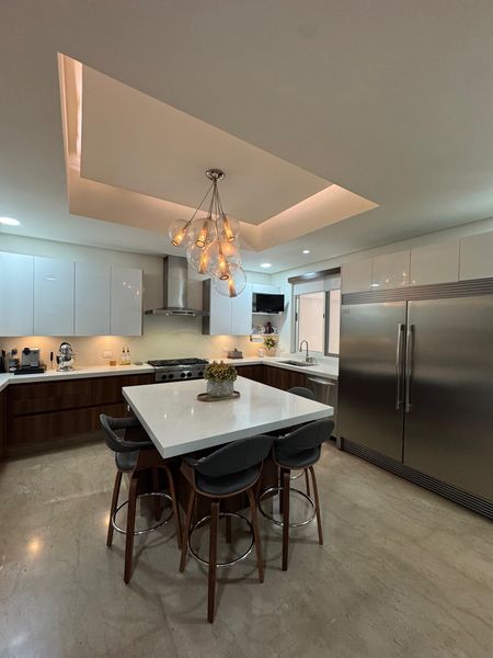 La cocina con barra, ante comedor y family room invitan a compartir momentos en familia.