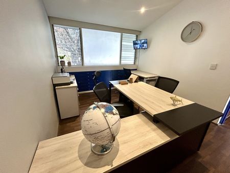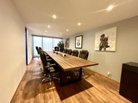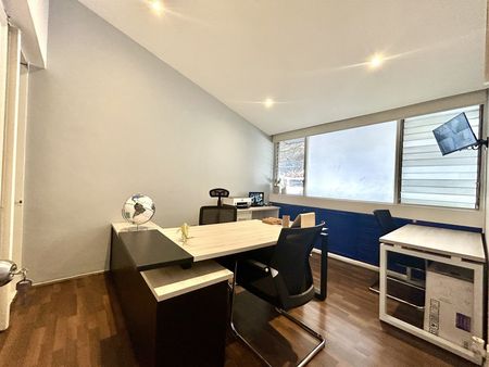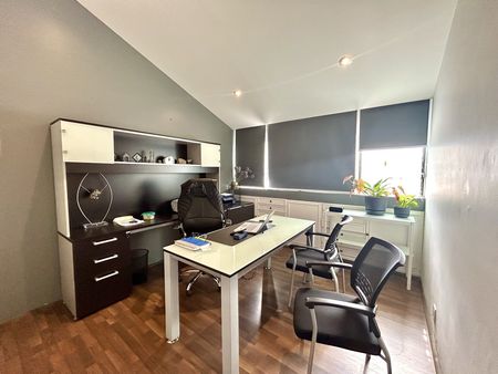 En la parte de arriba otras 3 oficinas y un área común con varios espacios, una cocina equipada, baños, cuarto de servicio y un lugar de estacionamiento.