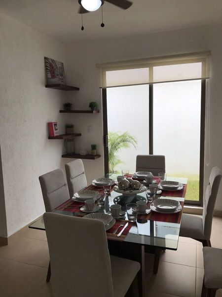 .Casa en venta en exclusivo fraccionamiento, con excelentes acabados, amueblado de calidad, espacios amplios e iluminados, tres niveles, 3 recámaras, la principal con baño incluido y vestidor, 1 baño completo para compartir con las dos recamaras, medio baño para visitas, sala comedor, terraza. Bodega. Construída en 2017 , mantenimiento $1,300.00 Cluster y $680.00 de Club . Excelentes amenidades,: Gimnasio , alberca con palapa y área de asador, vapor, cancha de futbol rápido, albercas, cancha de tennis, basquetbol, paddle, mesa de billar, pin pon y ludoteca.