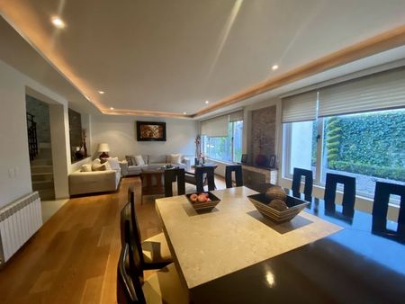Casa en condominio en cerrada con doble filtro de seguridad en venta. Distribución muy cómoda y funcional con acabados modernos y elegantes. Estancia muy amplia, cocina con barra de granito, antecomedor, 4 recámaras cada una con baño, oficina, sala de tv, 2 medios baños para visitas, salón de juegos con área de bar con salida a un Jardín privado. Cuarto de lavado y servicio, bodega, 4 estacionamientos. El conjunto cuenta con con doble filtro de seguridad y áreas comunes como: jardín con juegos infantiles, alberca, gimnasio y salón de adultos. Se aceptan mascotas.