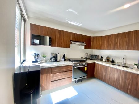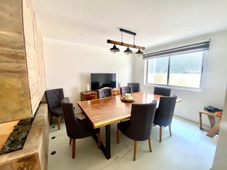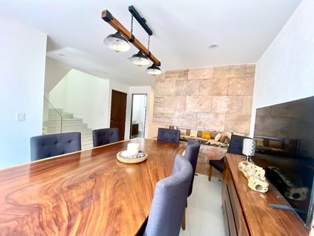 Sala comedor muy amplios, con una hermosa chimenea todo con excelentes acabados, la cocina súper amplia completamente equipada y muy iluminada, medio baño de visitas.