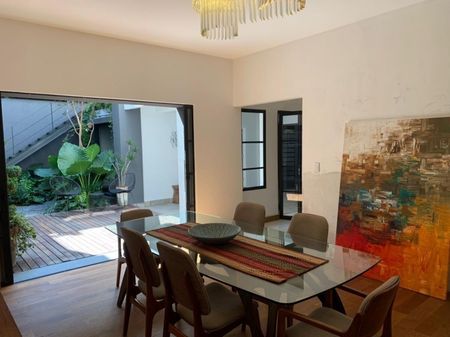 Es una casa de los años 50’s y remodelada hace un año, conservaron varias cosas de esos años y al modernizarla, la combinación quedó incteible y elegante.
