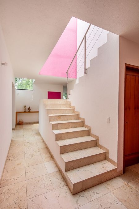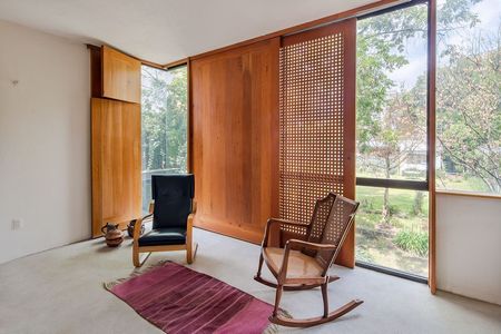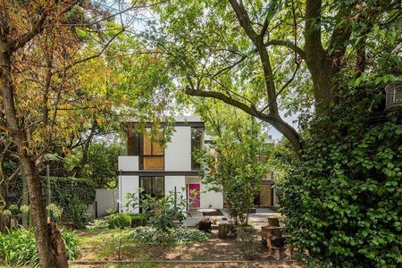 Esta propiedad cuenta con un terreno arbolado de 1,050 m2 y 450 m2 de construcción. Fue diseñada por el Arquitecto Armando Chávez (colaborador de Ricardo Legorreta).