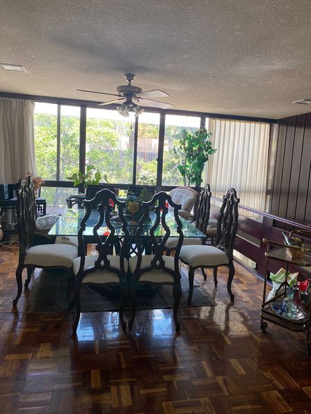 Sala, comedor, antecomedor, sala de TV, estudio, cocina.
