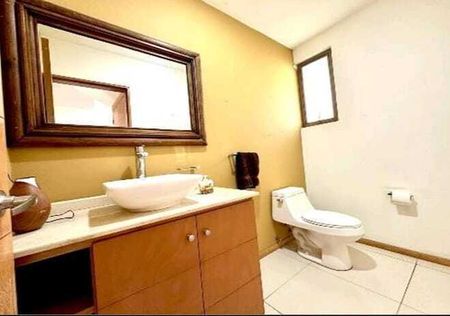 Condominio en exclusivo fraccionamiento de 2 niveles con 4 recámaras con vestidores, 5 baños completos y un 1/2 baño, sala, comedor, cocina integral, estacionamiento techado para 8 autos, amplio jardín, áreas comúnes, canchas de tenis, piscina y terrazas.
