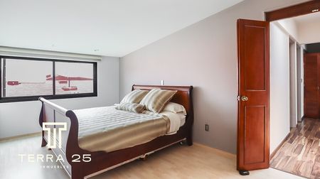 Recámara Principal: Con baño privado, walk-in clóset y un pequeño balcón con vista a la terraza.