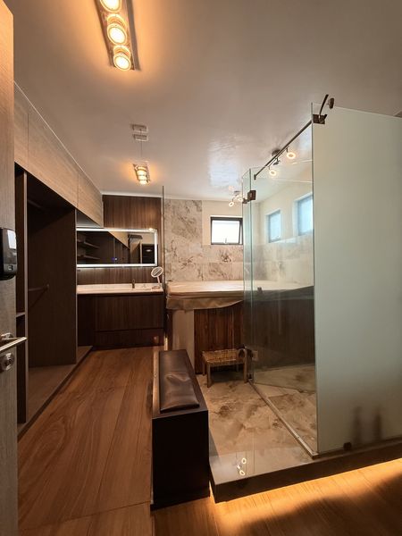 Las 3 recámaras son oasis privados: la principal presume un clóset adicional, baño remodelado con tocador y espejo inteligente, bañera familiar, iluminación indirecta por zonas, cerradura inteligente y piso de loseta imitación madera – ¡puro lujo sensorial! Cada recámara tiene baño completo, y todas las persianas (incluyendo la eléctrica del comedor) se quedan contigo.