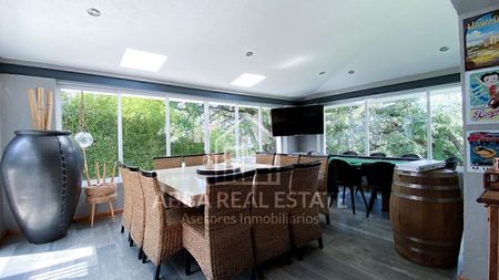 La propiedad cuenta con un amplio jardín con baños, cuarto de servicio con baño completo y área de lavado, estacionamiento para 2 coches techados y 6 coches abiertos, bodega, calefacción hidrónica y cisterna.