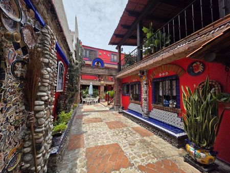Casa pintoresca en venta esta casa estilo rustico que esta distribuida en la siguiente forma entrada encontramos estacionamiento entrando encontramos estancia sala comedor, cocina integral ,baño completo , al fondo encontramos 2 recamaras la principal con baño completo y closets, en el primer piso encontramos la terraza y al fondo un departamento. y en la azotea 2 cuartos de servicio .