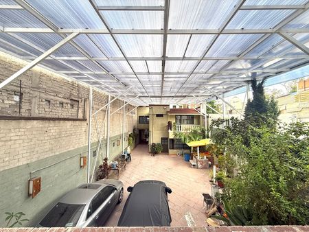Patio privado, totalmente techado, ideal para reuniones o área de descanso, en la pared del patio se encuentran 2 amplias bodegas.