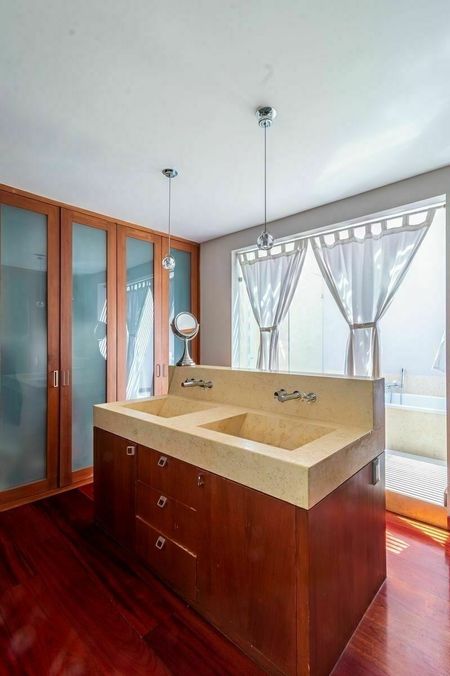 Consta de con 5 habitaciones con baño vestidor en la planta alta, área de estar y oficina abierta.
