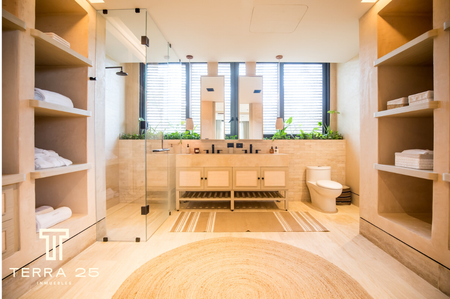 áreas de descanso privadas y terrazas con baños privados. En el último nivel podrás