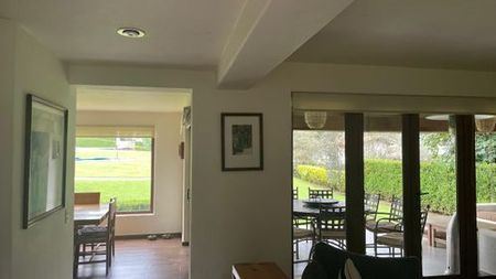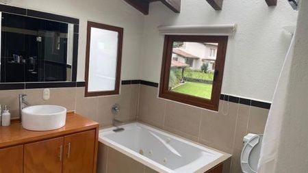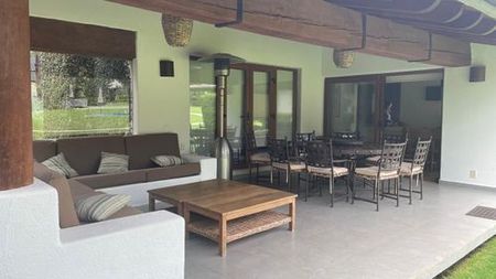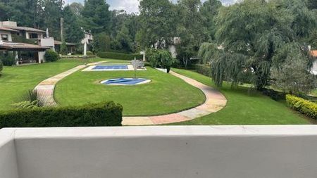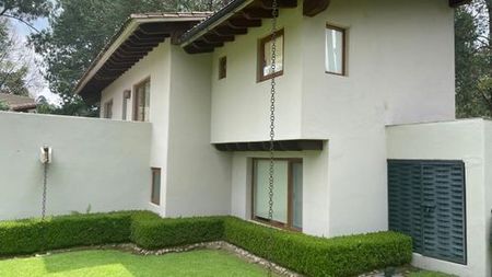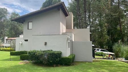 ubicada en el exclusivo Club de Golf Rancho Avandaro, en Valle de Bravo, Estado de México. Con una superficie total de 670 m2 esta casa cuenta con 4 recamaras, 4 baños completos, 1 medio baño y 3 estacionamientos.