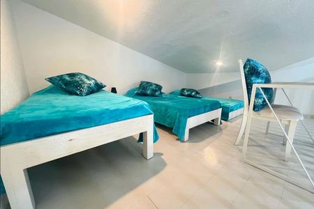 Desde la sala, el comedor y la cocina equipada, cada rincón ha sido diseñado para brindar comodidad. La terraza, con vista al jardín, invita a relajarse con el ambiente tropical. Sus dos recámaras y dos baños garantizan privacidad, mientras que el tapanco con tres camas adicionales permite recibir a más invitados con total comodidad. Además, cuenta con cuarto de lavado y estacionamiento propio.