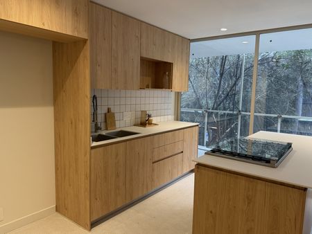 El depa tiene dos recámaras, dos baños y medio, una estancia amplia que se conecta con la cocina abierta (ya equipada y lista para usarse), y un cajón de estacionamiento no fijo. Todo dentro de un edificio completamente remodelado, donde se nota el cuidado en cada detalle.