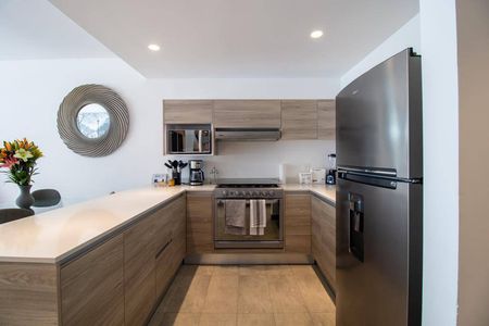 Cocina integral equipada: La cocina es el corazón del hogar, y esta no es la excepción. Cuenta con una moderna cubierta de cuarzo y está equipada con todo lo que necesitas para preparar tus platillos favoritos.