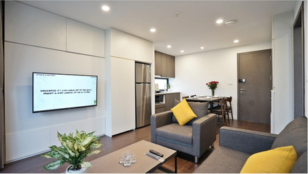 El departamento cuenta con 75.70m2 totales, de los cuales 70m2 son habitables, y 5.7m2 son de balcón. Tiene 2 recámaras, 2 baños completos, cocina integral, sala/comedor, pisos de ingeniería y vigilancia 24 horas.