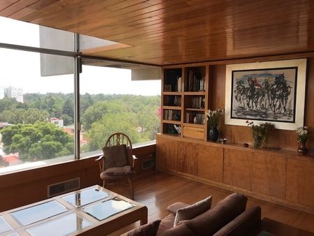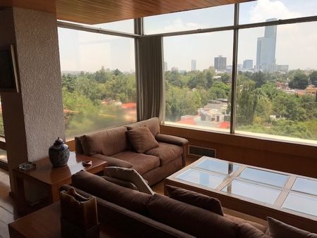 Sobre la calle de Margaritas entre Vito Alessio y Olivo, departamento ubicado en el 8º piso, desarrollado en 2 niveles, con superficie de 215 m2, en el primer nivel, estancia con gran vista a la ciudad, baño de visitas, cocina integral, área de lavandería y cuarto de servicio con baño, En el segundo nivel, estudio u oficina, sala de T.V. recamara con closet y baño completo en pasillo y recamara principal con terraza, vestidor y baño completo. Estacionamiento para 2 autos fijos. Renta $53,500 pesos mensuales con mantenimiento incluido. Informes y ventas Guillermo Martínez de Alva 55-1957-4073.