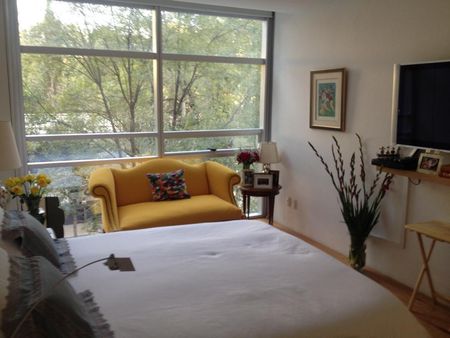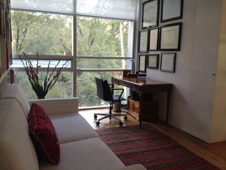 Departamento con vista arbolada con una superficie de 250 metros cuadrados 250. Edificio con seguridad 24/4 sin amenidades. Cuarto para choferes y el personal de servicio con baño en la planta baja.
