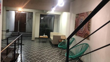 Sala comedor, cocina equipada, zona de lavado y tendido, dos recámaras, dos baños, dos estacionamientos, dos roof garden comunes, cámaras de circuito cerrado 24/7, una bodega