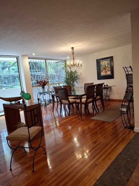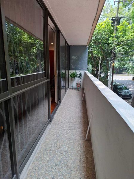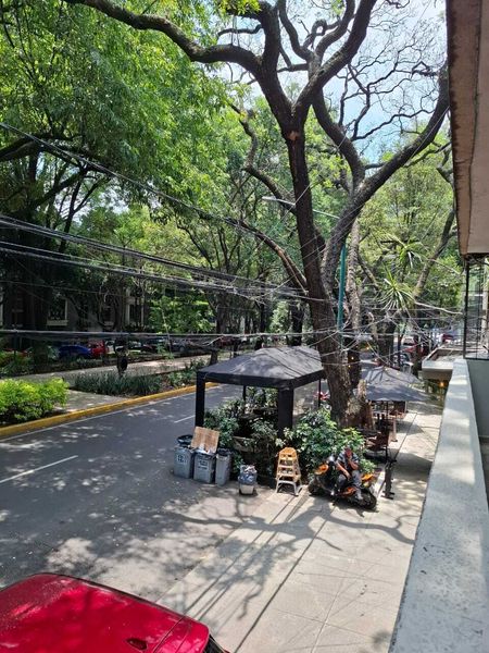Departamento ubicado en primer piso con espectacular vista al camellón arbolado de Av. Mazatlán, justo frente al emblemático complejo de edificios de la Condesa. A tan solo unas cuadras de Parque España y Parque México, y a 15 minutos caminando del Bosque de Chapultepec. Superficie habitable: 204 m²