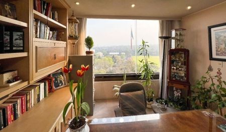Amplios espacios, en buen estado de conservación. Vista al Campo Marte. Elevador directo al piso. Piso alto. Superficie 350 m2. 3 recámaras, 2.5 baños, sala, comedor, family, estudio (puede ser 4ta recámara), cocina integral, lavandería, cuarto de servicio, 5 cajones de estacionamiento, 3 en batería y 2 independientes. 3 bodegas. Muchos closets, techos altos. Vigilancia 24/7. CCTV.