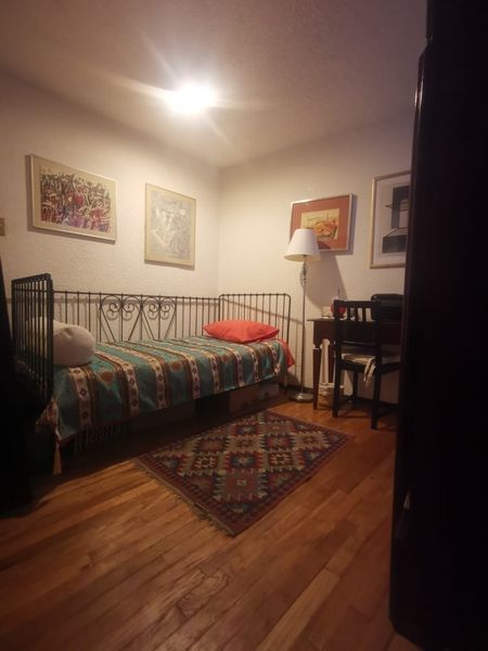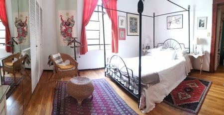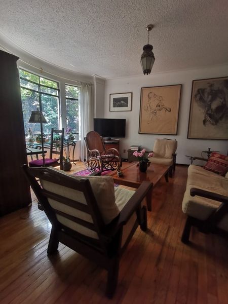 Departamento ubicado entre el Parque México y el Parque España. Seguridad las 24 hrs. Dos recámaras, un estudio, dos baños completes. Estacionamiento no fijo para 1 auto. Cuarto de servicio en la azotea.