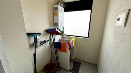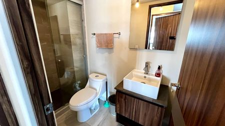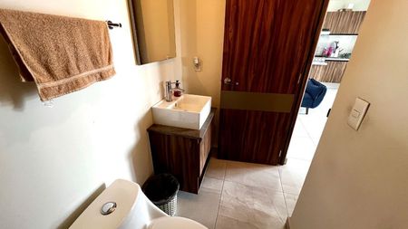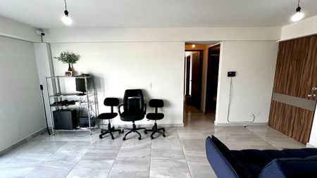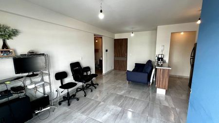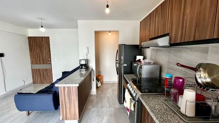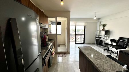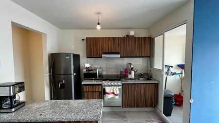 Se distribuye en estancia sala - comedor con balcón exterior, cocina integral con barra, espacio para alacena y área de lavado, calentador de paso Cinsa.