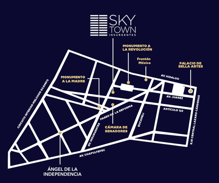 El departamento tiene 60.64 m2 de construcción, más 3.14 m2 de terraza. Se encuentra en el desarrollo de SkyTown, en Avenida Insurgentes.