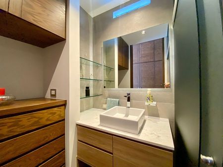 PISOS CON PORCELANATOS, FINOS ACABADOS EN COCINA, BAÑOS CON CANCELES DE VIDRIO TEMPLADO Y FINOS ACCESORIOS, FINAS MADERAS EN CLÓSETS Y PUERTAS.