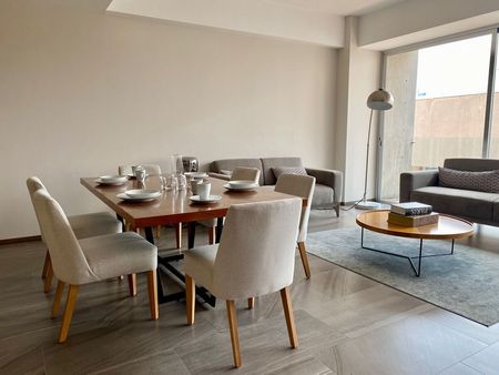 SALA CON TERRAZA, COMEDOR, COCINA EQUIPADA ABIERTA, ÁREA DE LAVANDERÍA, BAÑO COMPLETO EN PASILLO, RECÁMARA SECUNDARIA CON CLÓSET, RECÁMARA PRINCIPAL CON CLÓSET Y BAÑO COMPLETO.