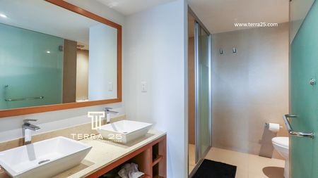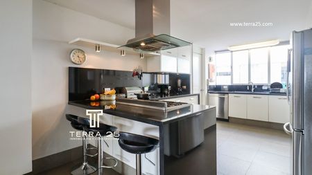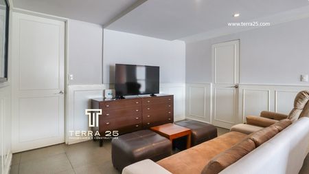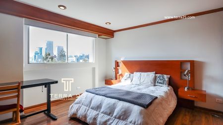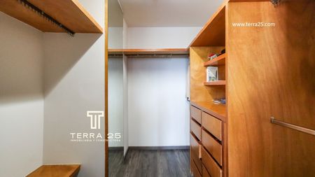 Por la parte privada del departamento se encuentra una sala de TV y estudio que conectan a las 3 habitaciones, la habitación principal cuenta con vestido y baño completo.