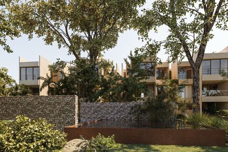 Departamento en venta al norte de Mérida dentro del desarrollo residencial de lujo Pájaro en Piedra, ubicado en Tixcuytún, una zona de fácil acceso mediante vialidades que conectan con la ciudad.