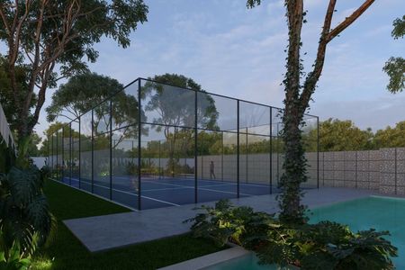 Entre sus amenidades se encuentran; Parque Central de 4,000 m2, Carril de piscina de nado semi-olímpica, Piscina recreativa, Terrazas techadas, Salón de eventos y fiestas, Área recreativa de bar, Área de niños, Cancha de pádel, Cancha de pickleball.