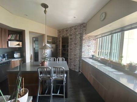 El departamento cuenta con sala, comedor, ante comedor, dos despachos (uno para consultorio) , family room muy amplio, un área extra que se puede cerrar para otro espacio, billar u otro, cocina equipada remodelada con dos despensas.