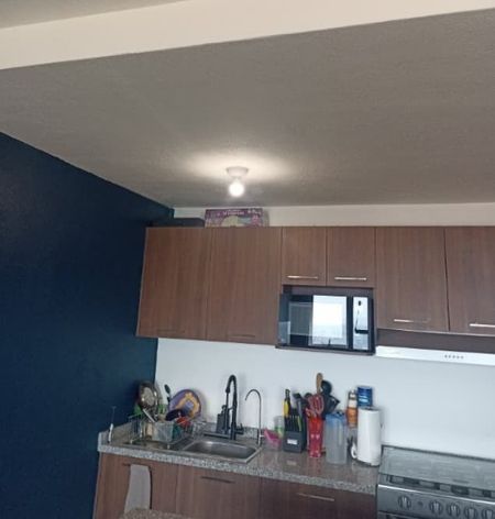 Equipamiento: Departamento en condominio en venta de 92 m2 de construcción, con vista exterior, desarrollada en una planta arquitectónica, 2 lugares de estacionamiento independiente. Consta de 3 habitaciones, 2 baños, sala comedor, cocina y área de lavado. Cuenta con instalación para gas por tanque estacionario. Equipada con cocina integral, estufa, campana sin garantía. Tiene piso cerámico en toda el área habitable.
