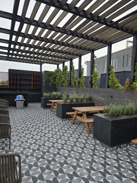 La propiedad ubicada en el piso 1 te permite tener vistas verdes increíbles del parque urbano fuera del edificio.