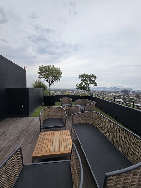La cocina es un área abierta, con barra, área de almacenamiento y una amplia sala/estancia que te encantará. Cuentas con medio baño para visitas y área de lavado integrado. Como plus tienes un balcón en que te puedes relajar o disfrutar de la Ciudad con sus vistas panorámicas.