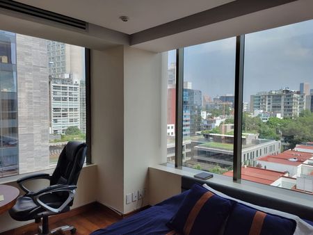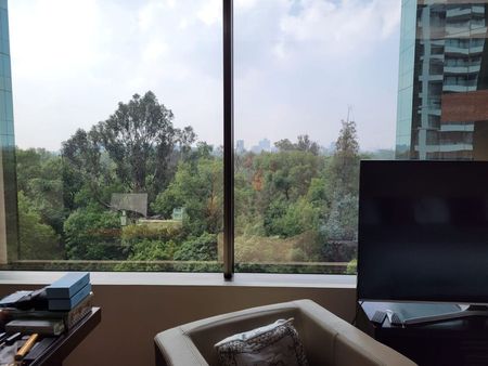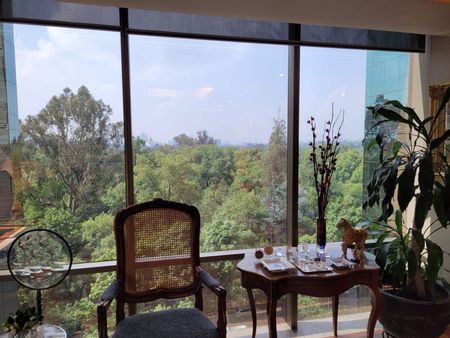 Excelente departamento de 400 m2, vista al bosque y ubicación inmejorable. Cuenta 3 recámaras, 3 1/2 baños, 3 lugares de estacionamiento, cava, sala de cine, acabados de madera de encino y mármol italiano, persianas black out, 2 elevadores principales más el de servicio, seguridad 24 horas.