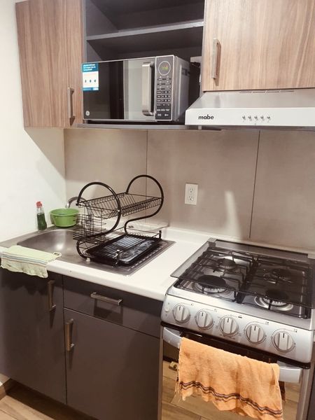 Estancia, cocina equipada, área de lavado, ubicado en segundo piso (interior), un estacionamiento techado (no fijo)