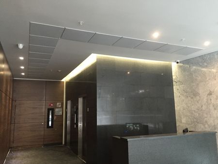 • Las Fachadas exteriores del edificio se componen de cristales dobles con características de aislamiento acústico y