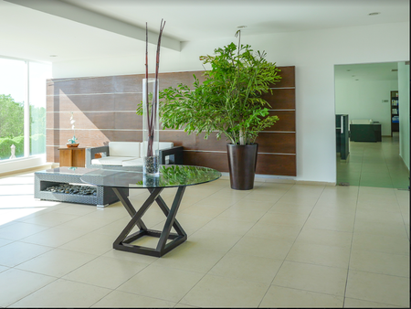 Los acabados incluyen mármol blanco, pisos de