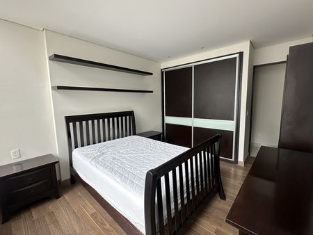 Cuenta con dos habitaciones, la principal con baño y vestidor. Todas tienen closet y pisos de madera NO alfombra como otros.