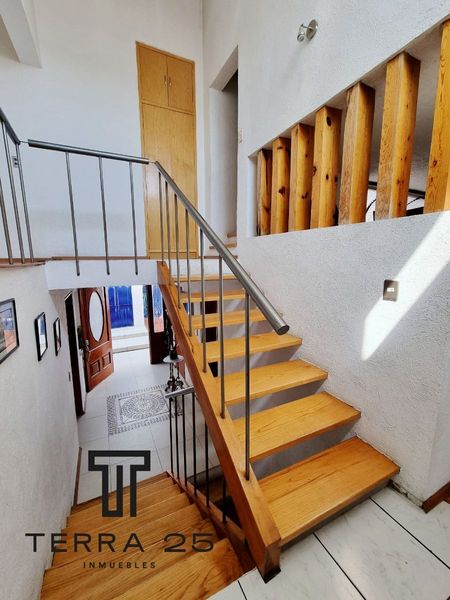 Diseñada con una distribución en 3 pequeños desniveles, cada espacio de esta casa se convierte en una experiencia única y acogedora. Desde la terraza con vista al exuberante jardín, perfecta para disfrutar de momentos de serenidad, hasta su cautivadora biblioteca, este hogar está pensado para inspirar y deleitar.