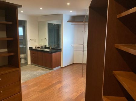 El departamento cuenta también con cuarto de servicio con baño, lavandería, bodega y tres lugares de estacionamiento.