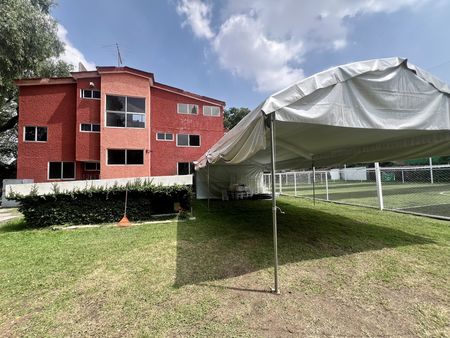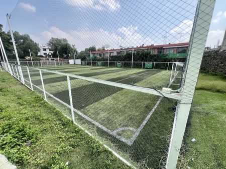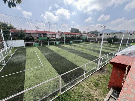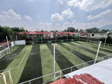 Dos predios en venta ideal para inversionistas en Tepepan, a 5 minutos de periferico, para desarrollos habitacionales, clubes deportivos o escuela, cuentan con una casa a la entrada que se utilizaba como oficinas de tres pisos y un terreno muy amplio, con dos construcciones de dos pisos, con área de baños en la planta baja y un cuarto en la planta alta, amplio estacionamiento, área de cafetería, una cancha de fútbol 7 y una cancha de frontón.