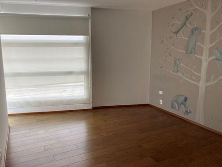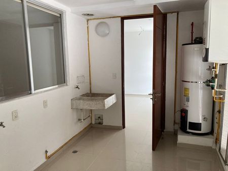 El departamento cuenta también con cuarto de servicio con baño, lavandería, bodega en el mismo piso y cuatro lugares de estacionamiento techados.